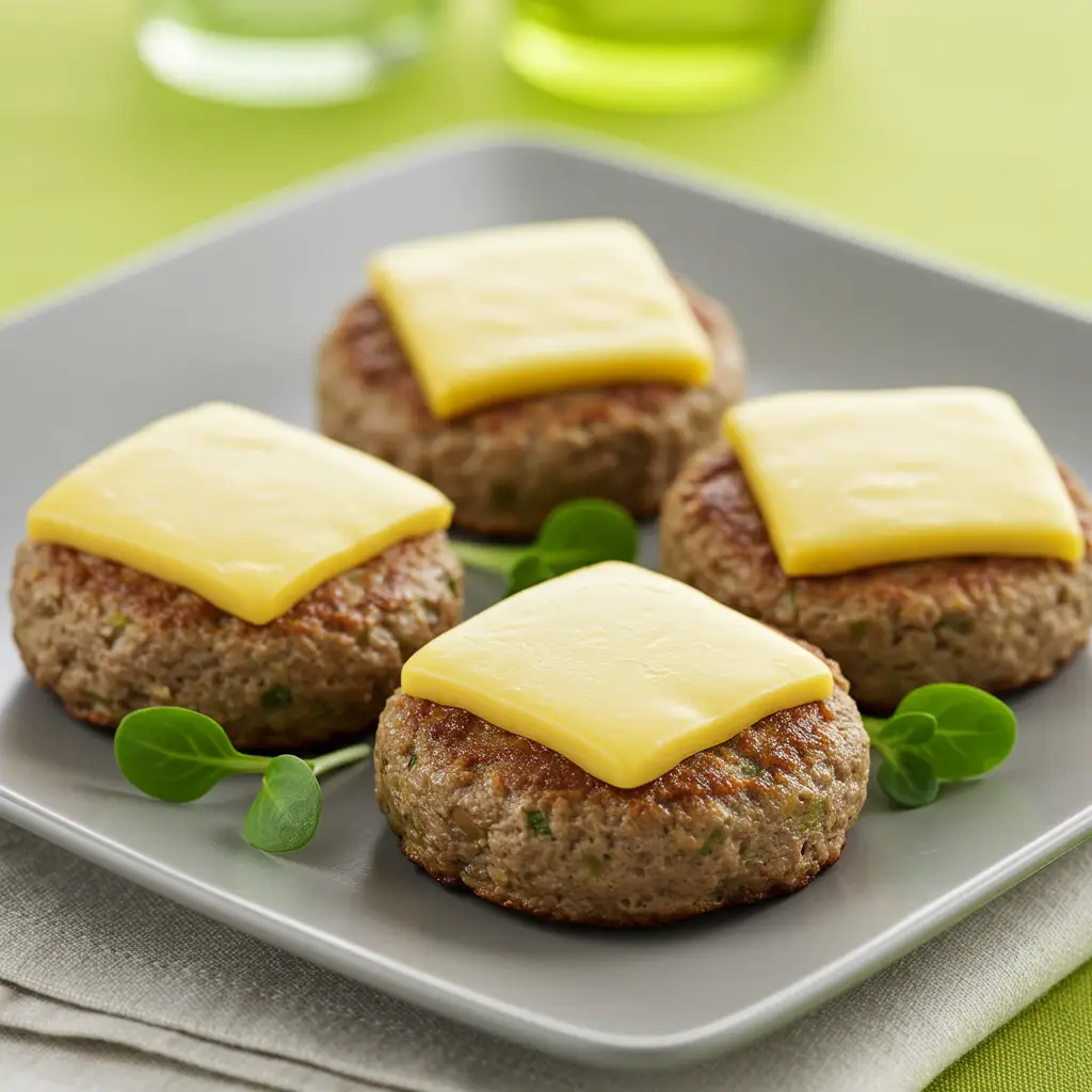 Retire do forno, coloque uma fatia de queijo Minas Frescal light sobre cada hambúrguer.