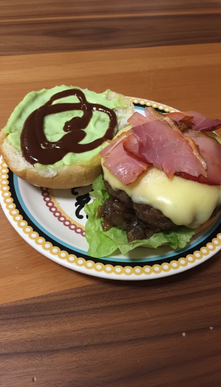 Um hambúrguer suculento e saboroso, com a combinação perfeita de costela e carne moída, finalizado com um toque defumado do bacon e o sabor intenso do barbecue.