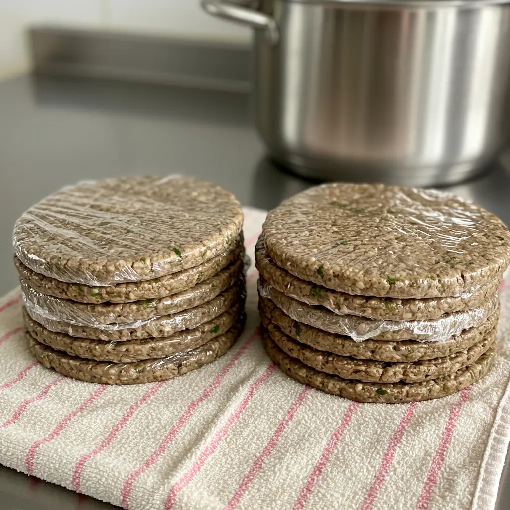 Embrulhe cada hambúrguer em filme plástico e leve ao congelador por pelo menos 2 horas.