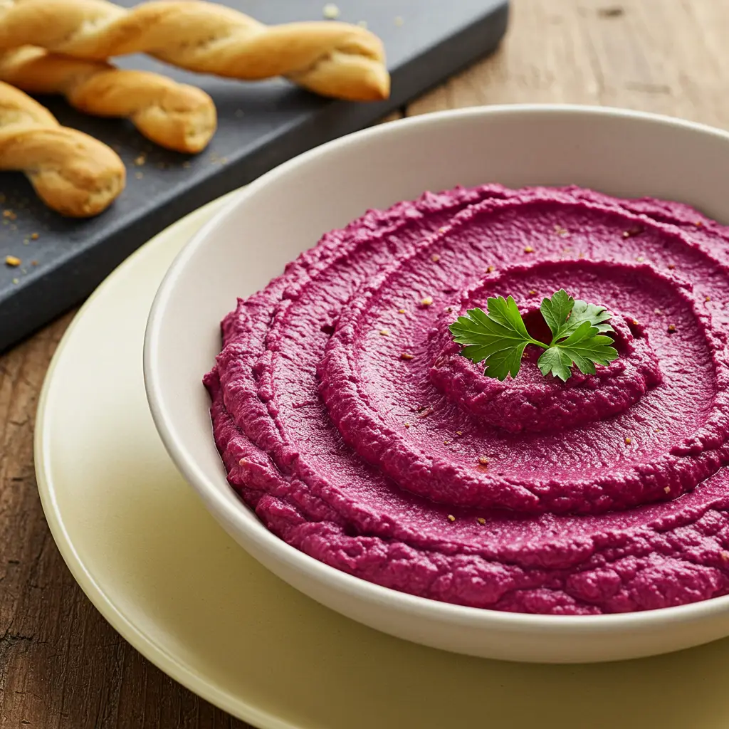 Um homus cremoso e vibrante, com o sabor adocicado da beterraba e o toque defumado do forno. Perfeito como entrada ou acompanhamento para pães e torradas.