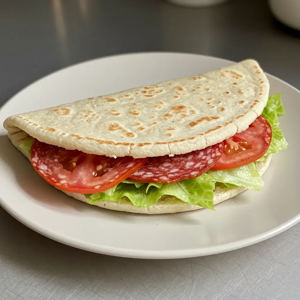 Um lanche prático e saboroso, perfeito para um lanche rápido e delicioso! Salame, ricota cremosa e tomate fresco combinam perfeitamente neste pão folha crocante.
