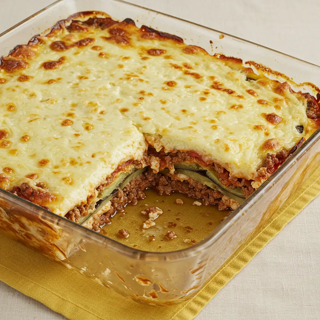 Uma lasanha deliciosa e fácil de fazer, com o sabor inconfundível da berinjela à parmegiana. Camadas suculentas de berinjela empanada, molho de carne saboroso e queijo derretido. Uma refeição completa e irresistível!