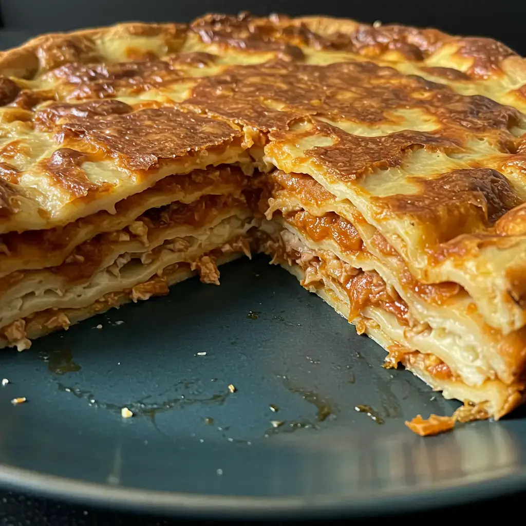 Uma lasanha caseira deliciosa e fácil de fazer, com camadas de massa de pastel, carne moída suculenta, queijo derretido e um cremoso molho branco. Uma refeição completa e saborosa para toda a família.