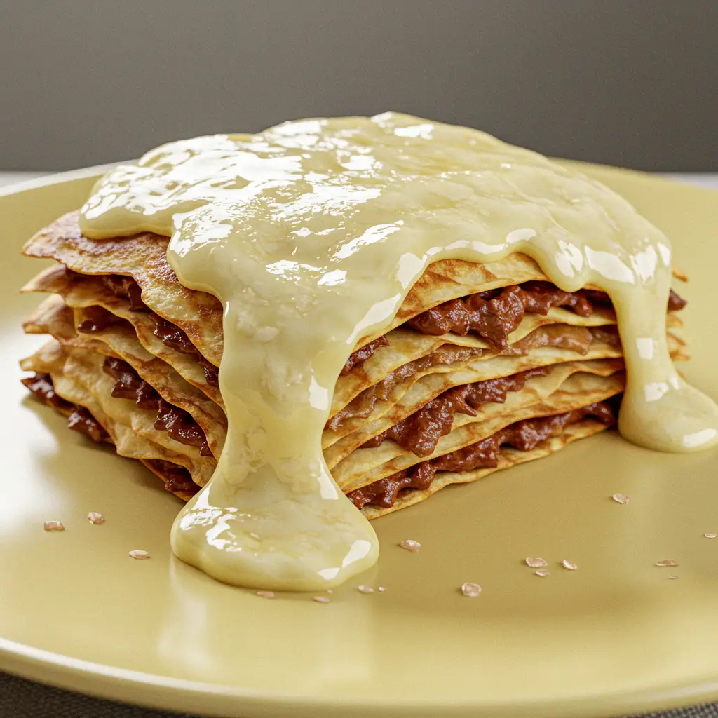Uma releitura deliciosa da lasanha clássica! Camadas de panquecas macias envolvem um suculento molho de carne e tomate, finalizado com queijo derretido. Uma explosão de sabores que vai conquistar o seu paladar.