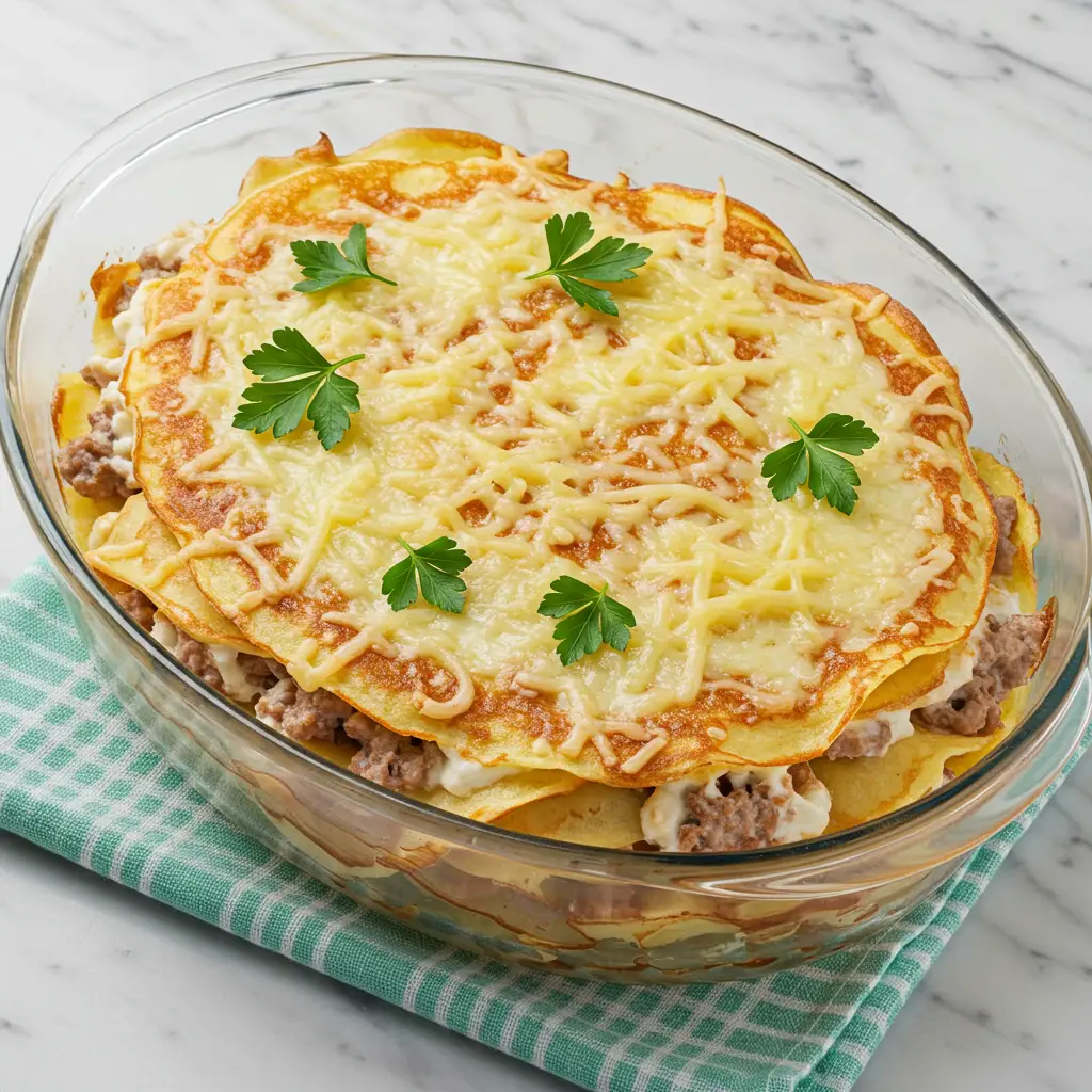 Uma releitura deliciosa da lasanha clássica! Camadas de panquecas fofas, recheios saborosos de frango e presunto, e um cremoso molho branco. Uma opção prática e irresistível para o seu jantar.