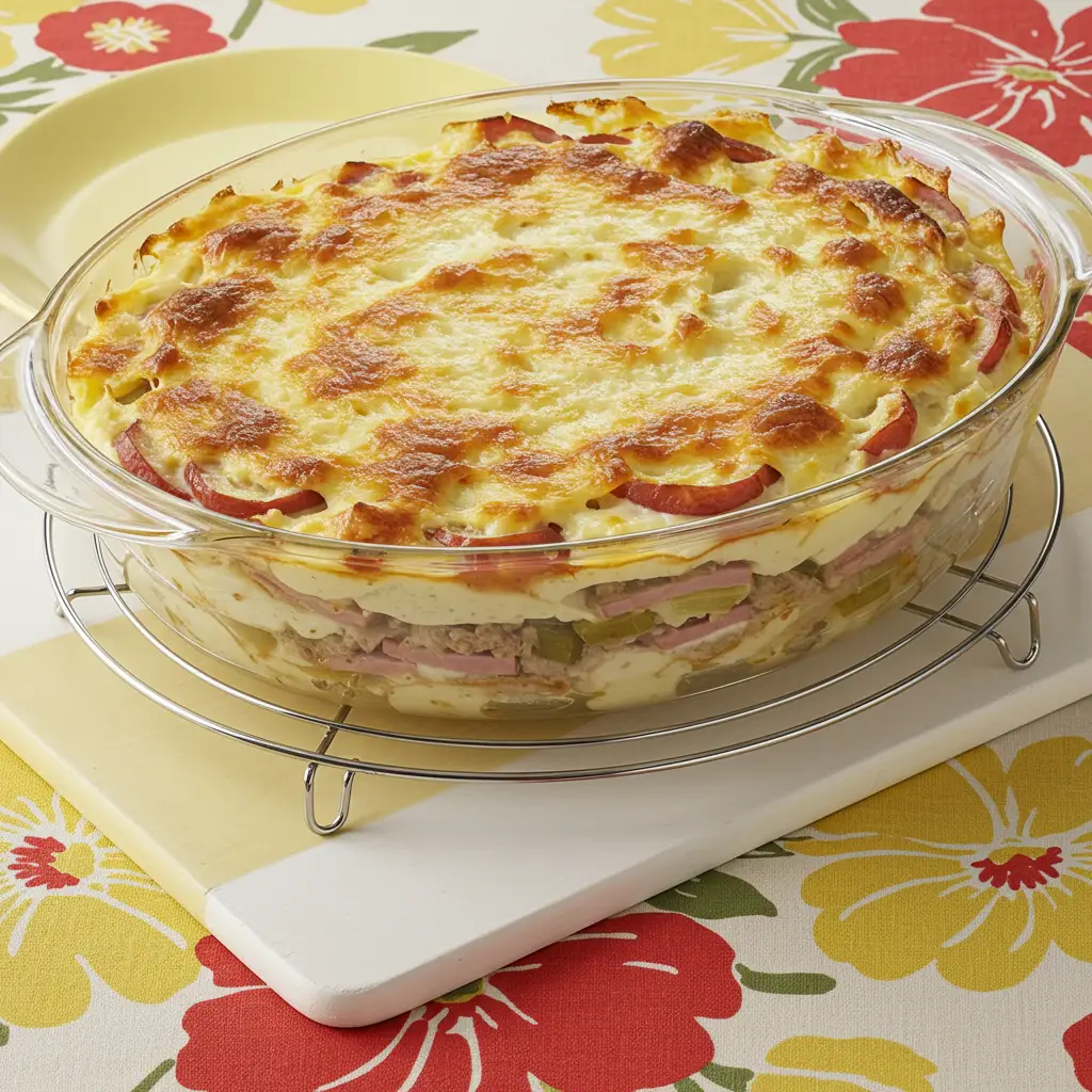 Montagem: Em um refratário, espalhe uma camada do molho branco, depois uma camada de massa de lasanha, uma camada de frango, uma de presunto, uma de mussarela e repita as camadas: molho branco, massa, carne moída, presunto, mussarela; molho branco, massa, carne seca, presunto, mussarela.