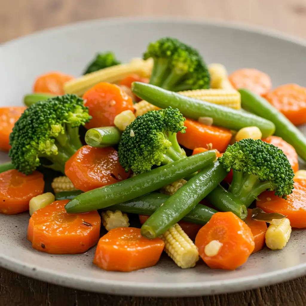 Um acompanhamento simples e saboroso, perfeito para um almoço em família. Legumes frescos salteados na manteiga, com o toque especial de ervilhas e azeitonas.