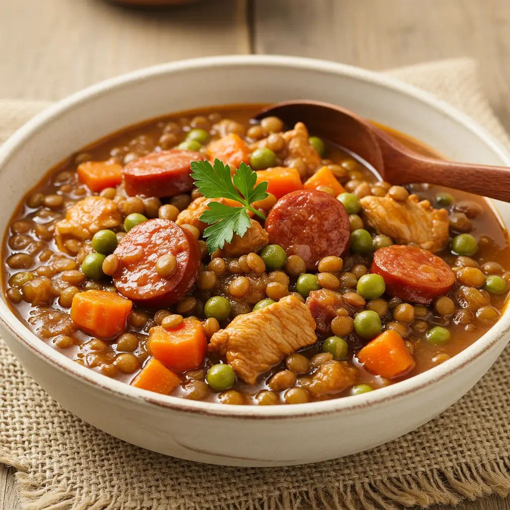 Um prato brasileiro saboroso e prático! Lentilha macia e saborosa, realçada pela calabresa defumada e temperos frescos. Ideal para um almoço reconfortante e cheio de sabor.