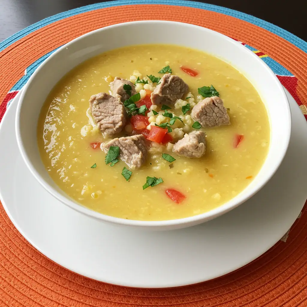 Um prato tradicional paraguaio, reconfortante e saboroso. Costela bovina cozida lentamente com canjica, criando um caldo cremoso e cheio de sabor. Uma receita perfeita para um dia frio.