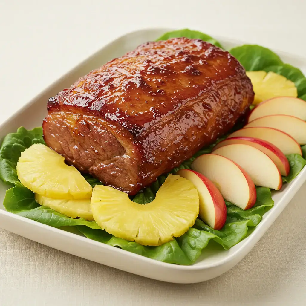 Um lombo de porco suculento e saboroso, marinado em uma mistura cítrica e aromática, assado lentamente até ficar macio e perfumado. Acompanhado de abacaxi caramelizado e maçã, uma verdadeira explosão de sabores!