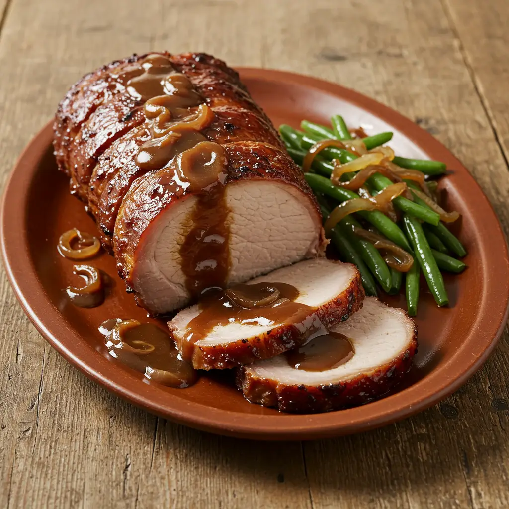 Um lombo suculento e saboroso, marinado em cerveja escura e finalizado com um molho cremoso e encorpado. Acompanha um delicioso refogado de vagens e cebola. Uma receita perfeita para um jantar especial!