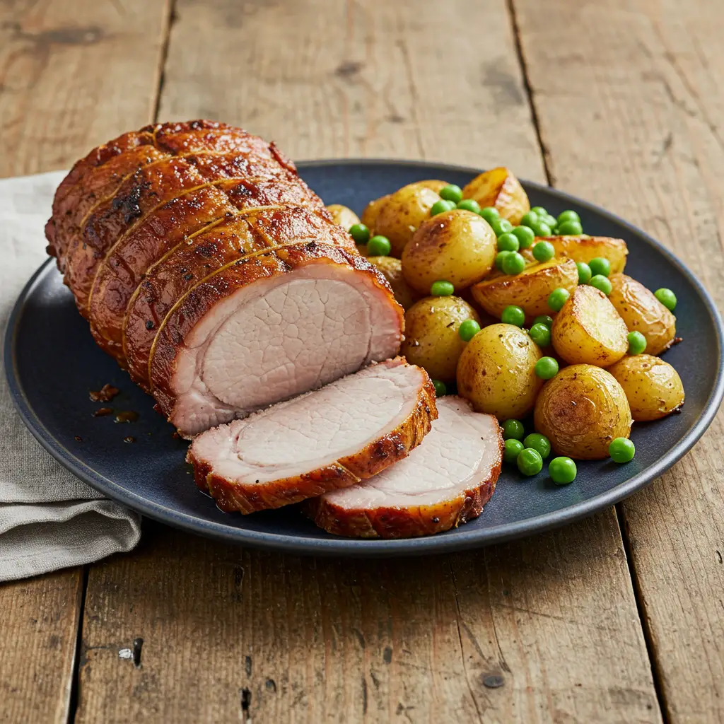 Um lombo de porco suculento e saboroso, defumado e acompanhado de batatas douradas e ervilhas frescas. Uma receita clássica, perfeita para um almoço em família ou um jantar especial.