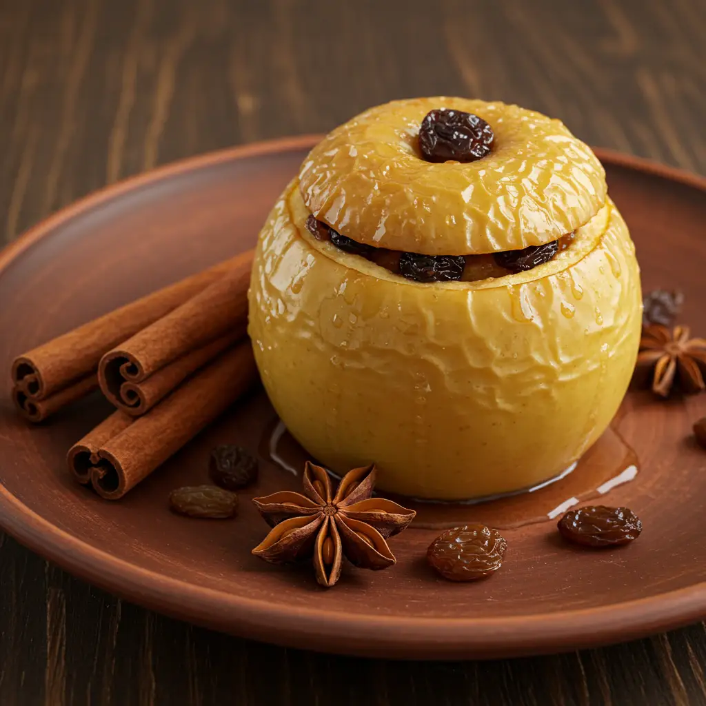 Uma maçã assada aromática e deliciosa, perfeita como sobremesa leve ou acompanhamento. O vinho do Porto e as especiarias conferem um toque sofisticado e sabor único a esta receita simples.