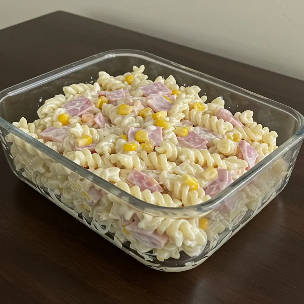 Um macarrão cremoso e saboroso, perfeito para um almoço em família! Combinação irresistível de frango desfiado, presunto e milho, tudo envolvido em um molho de maionese. Prato prático e delicioso!