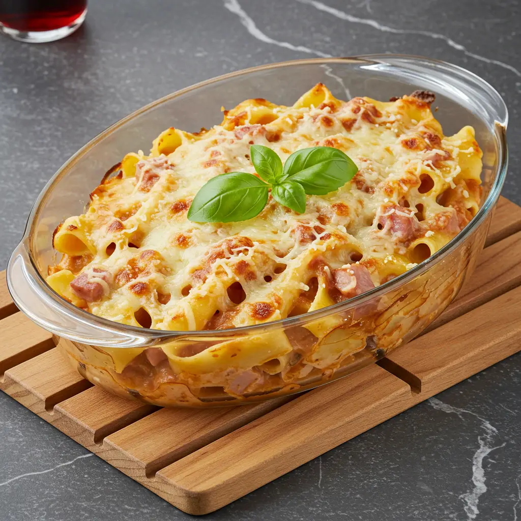 Um macarrão cremoso e saboroso, com um molho de frango e presunto ao toque de dendê. A mussarela derretida completa a experiência, perfeita para um jantar especial.