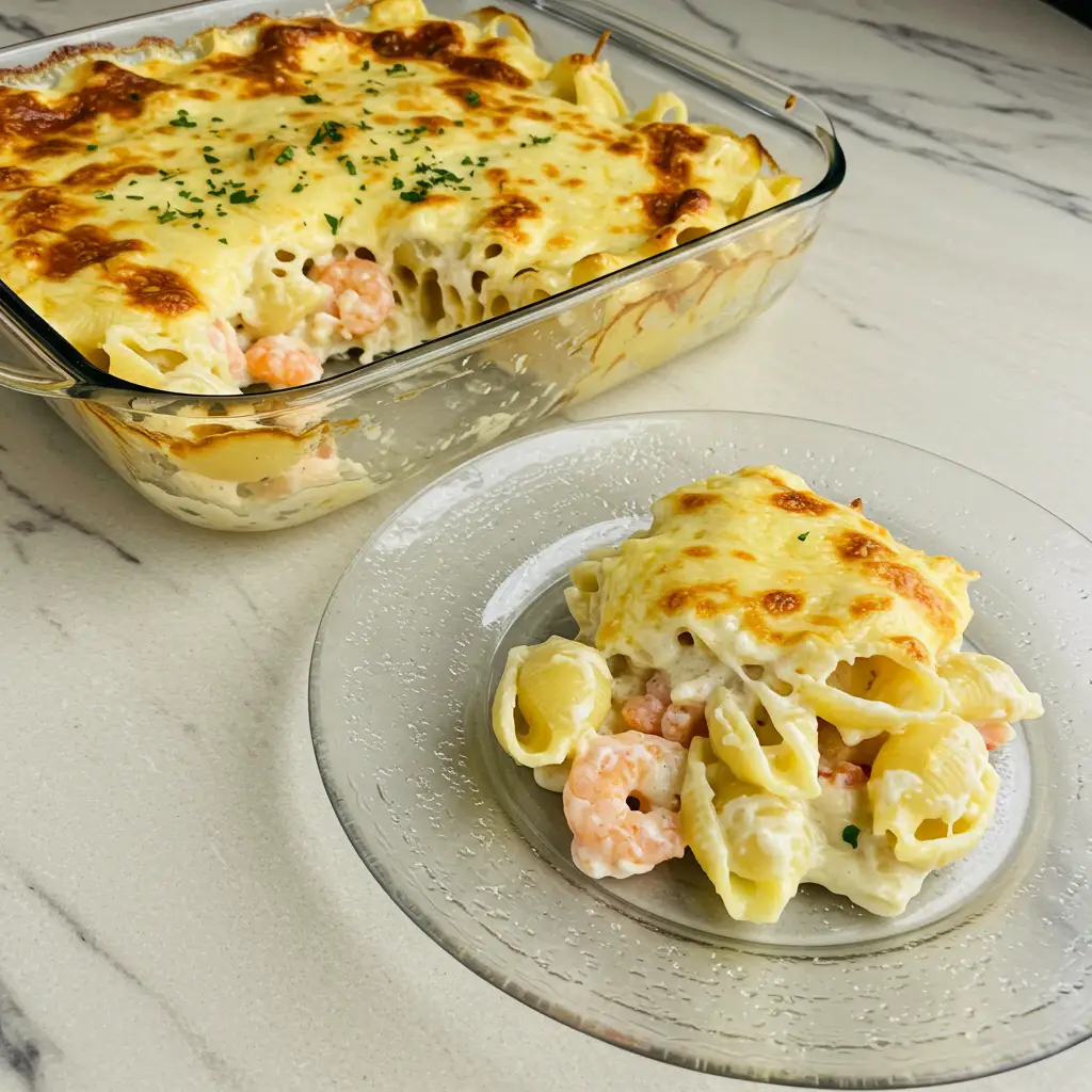 Um prato saboroso e fácil de preparar! Macarrão parafuso cremoso, com camarões suculentos e um toque defumado do caldo de bacon. Finalizado com queijo gratinado no forno, uma delícia irresistível!