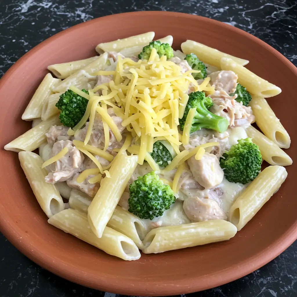 Macarrão com Frango, Brócolis e Molho Branco Cremoso