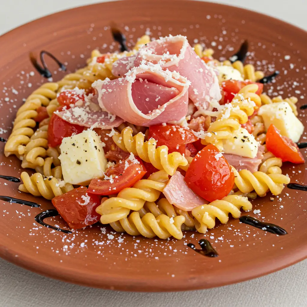 Um prato prático e saboroso, perfeito para o dia a dia! Macarrão penne cremoso, coberto com mussarela derretida e presunto, gratinado no forno até ficar dourado.