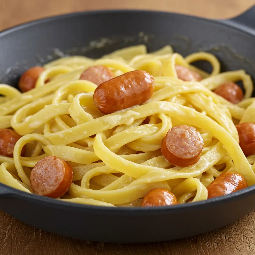 Um prato prático e saboroso, perfeito para um jantar rápido e fácil. O macarrão instantâneo ganha um toque especial com salsicha, molho de tomate e queijo derretido, criando uma combinação irresistível.