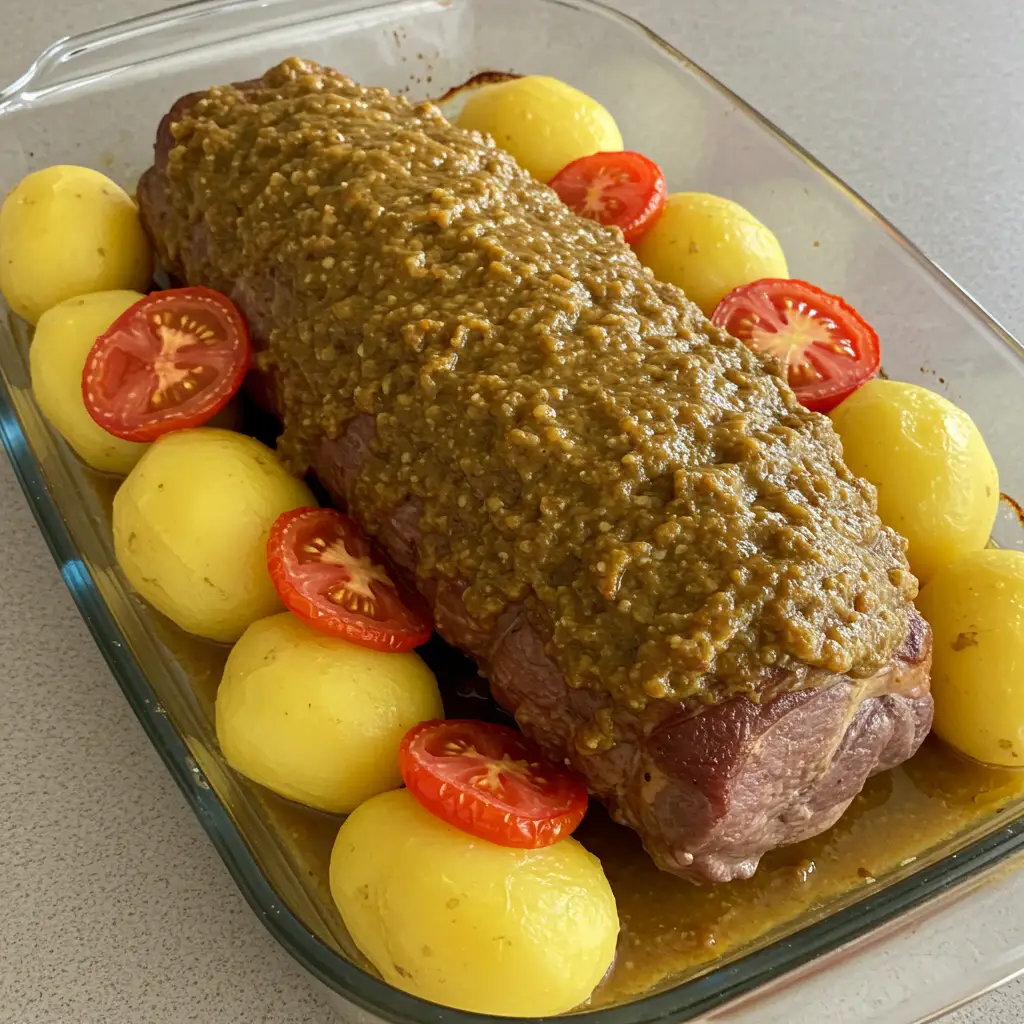 Uma maminha suculenta e macia, assada ao forno com batatas e tomates, coberta por um delicioso molho de vinho tinto. Perfeita para um almoço de domingo em família! Acompanhamentos ideais: arroz branco e brócolis.