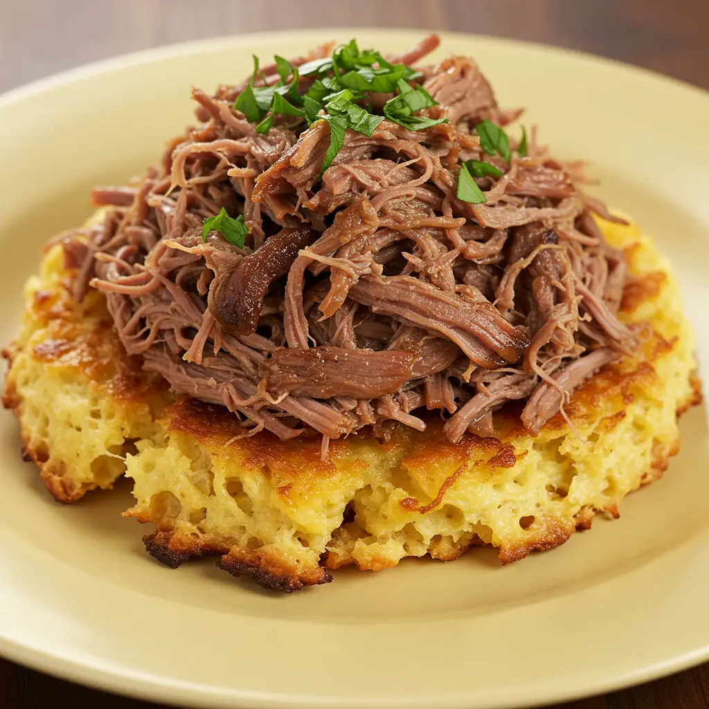 Uma combinação perfeita de maminha macia desfiada na cachaça, com um rösti de mandioca, mandioquinha e batata-doce, criando uma experiência gastronômica brasileira inesquecível.
