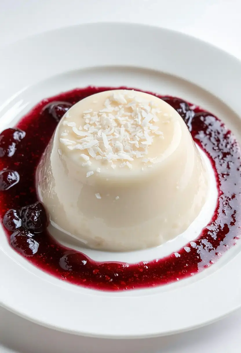 Delicie-se com a suavidade do manjar de coco, complementada pela irresistível calda de ameixa. Uma sobremesa que encanta todos os paladares!