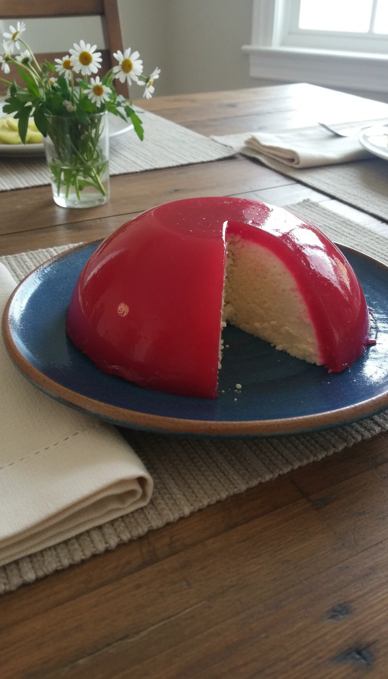 Delicioso manjar cremoso de coco, envolvido por uma brilhante gelatina incolor e coberto com uma irresistível calda de groselha. Uma sobremesa que encanta a todos!