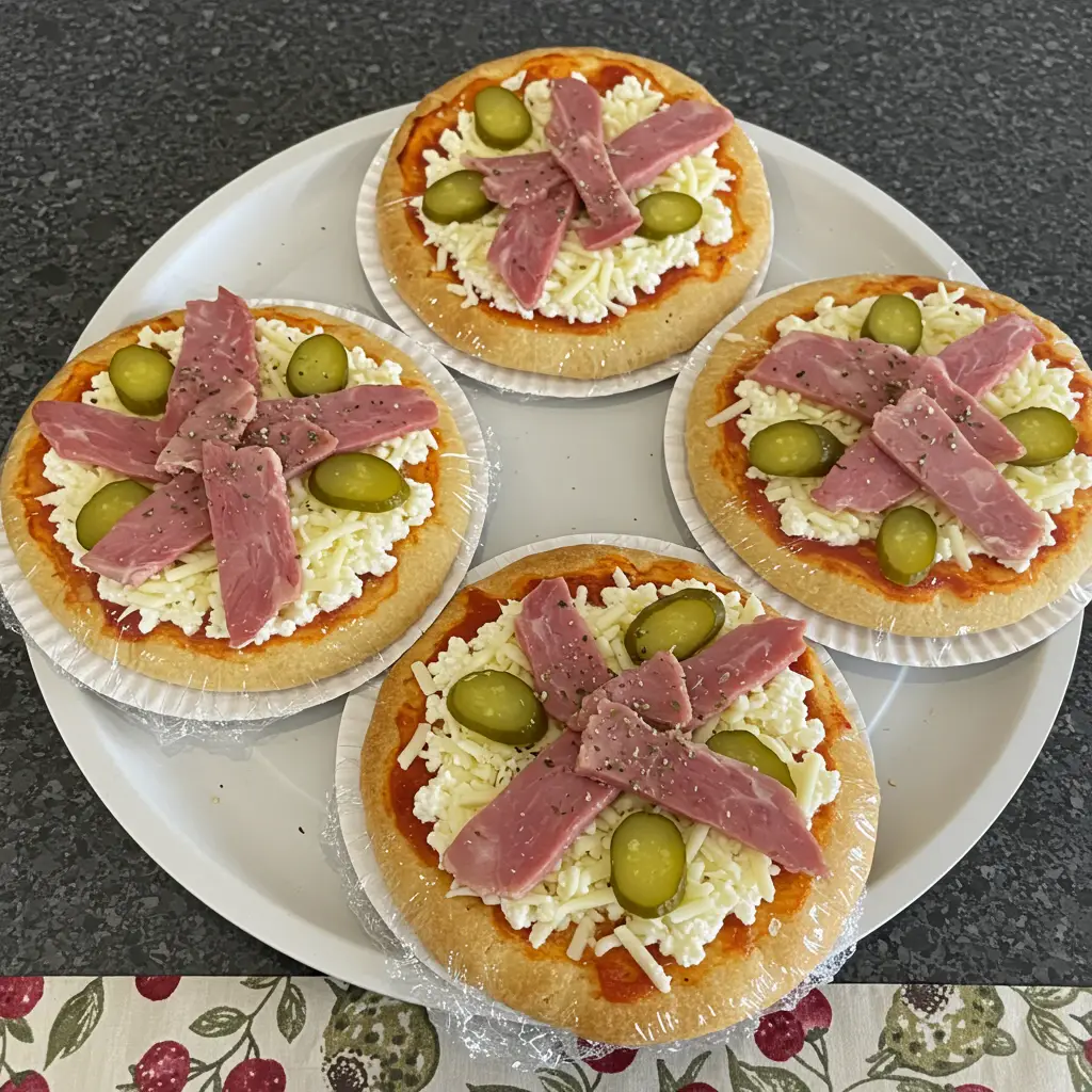 Recheie os discos de massa com seus ingredientes favoritos e asse em forno pré-aquecido a 200°C até que a massa esteja dourada e o recheio esteja cozido.