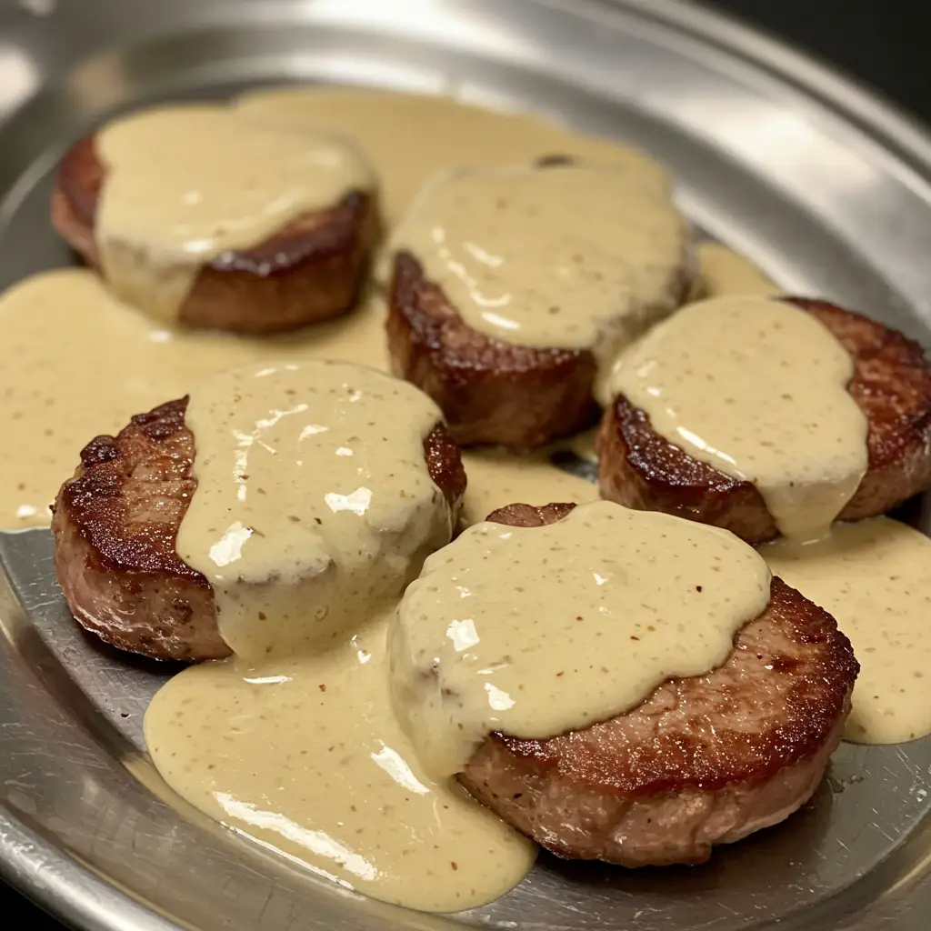 Medalhões suculentos de filé mignon, selados na manteiga e cobertos por um irresistível molho ferrugem cremoso. Uma combinação perfeita de sabor e elegância, ideal para um jantar especial.