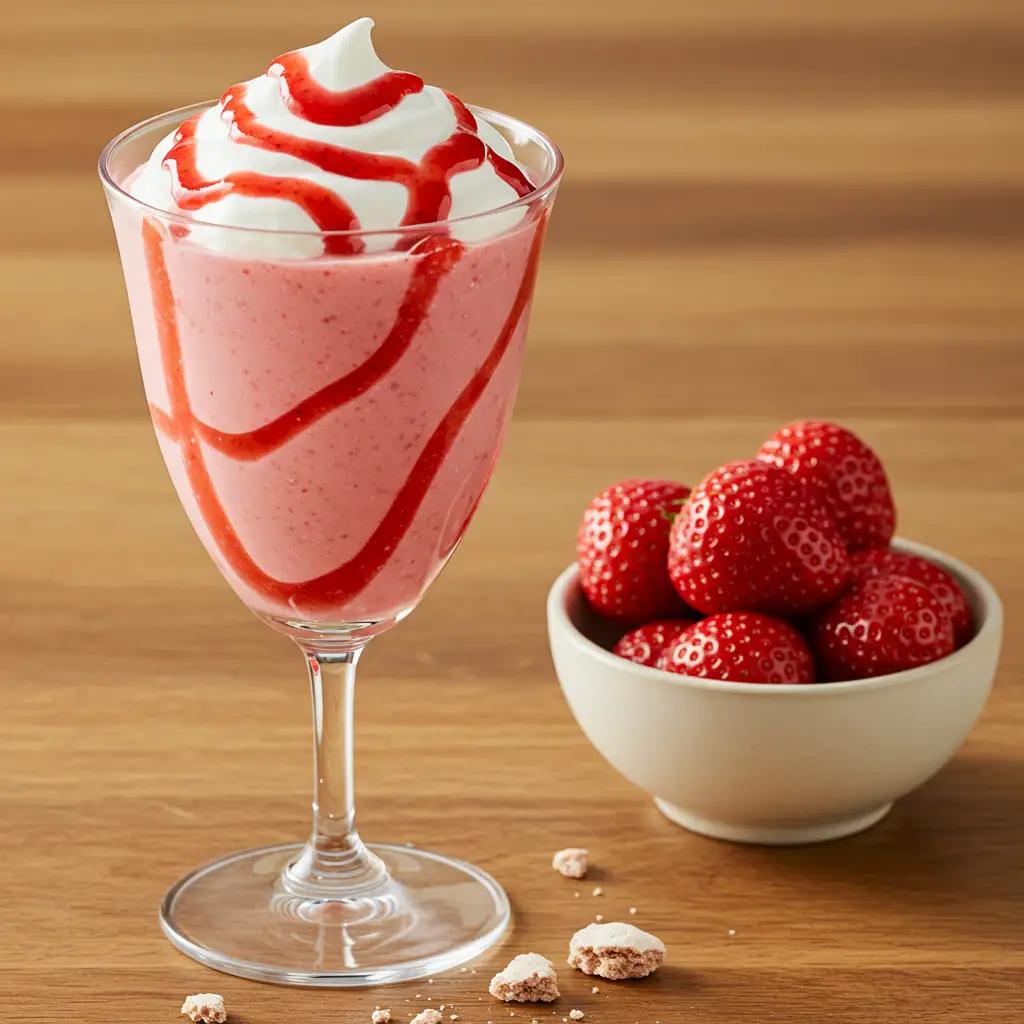Um milkshake delicioso e refrescante, perfeito para um lanche da tarde ou sobremesa. A combinação de morango, sorvete de flocos e suspiro proporciona uma experiência única de sabor e textura.
