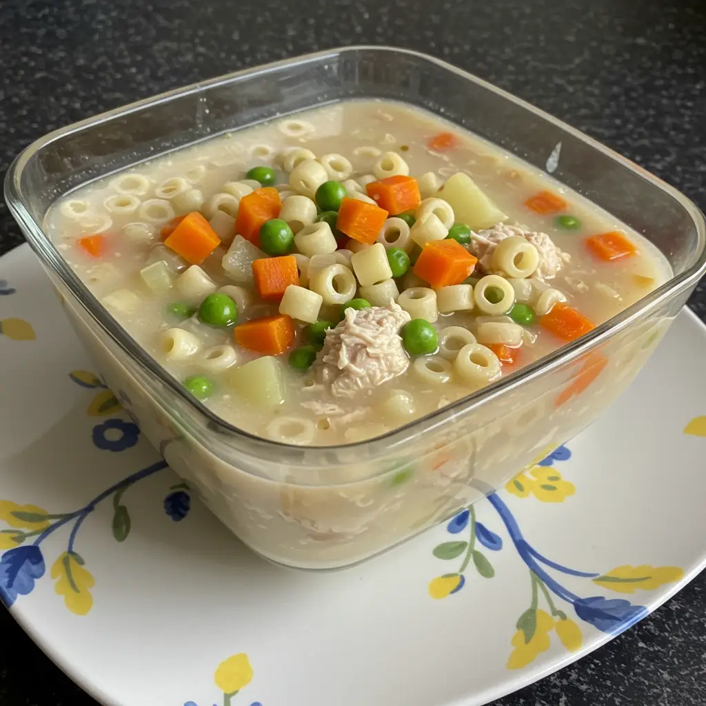 Um minestrone cremoso e saboroso, com frango desfiado e legumes frescos. Uma refeição completa e nutritiva, perfeita para um almoço ou jantar leve e reconfortante.