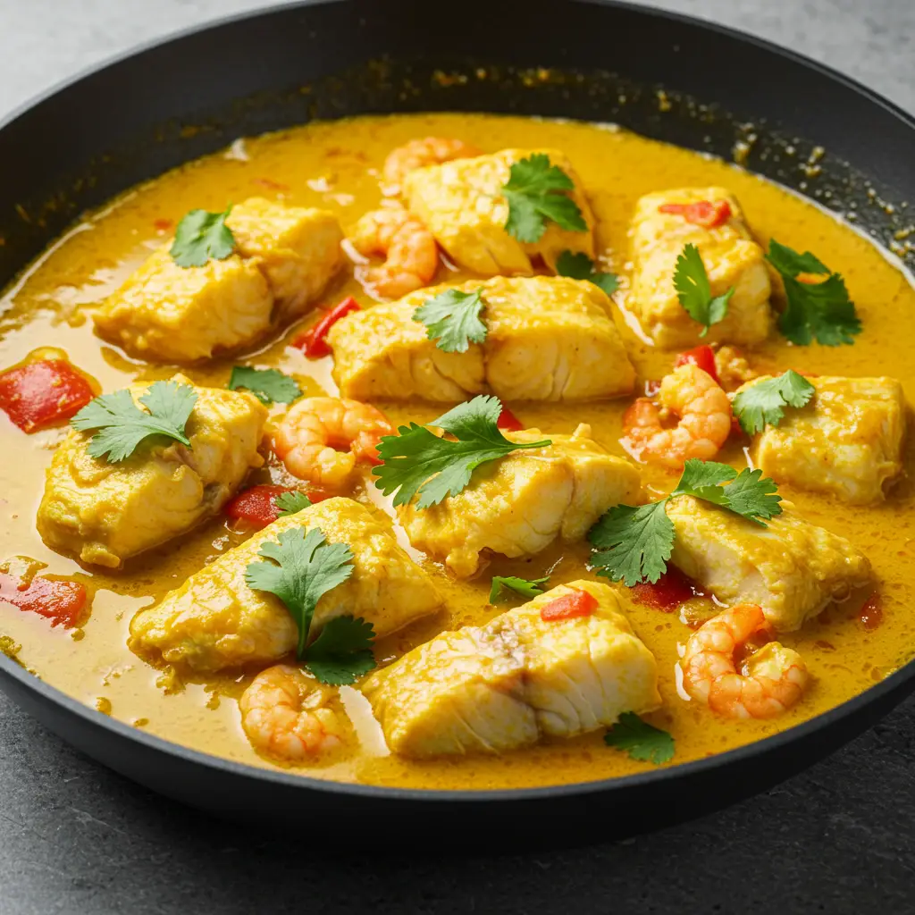 Uma moqueca leve e saborosa, preparada na wok para um toque especial. O cação e o camarão se unem em um molho cremoso de leite de coco, tomate e pimentões coloridos. Uma explosão de sabores da culinária brasileira!