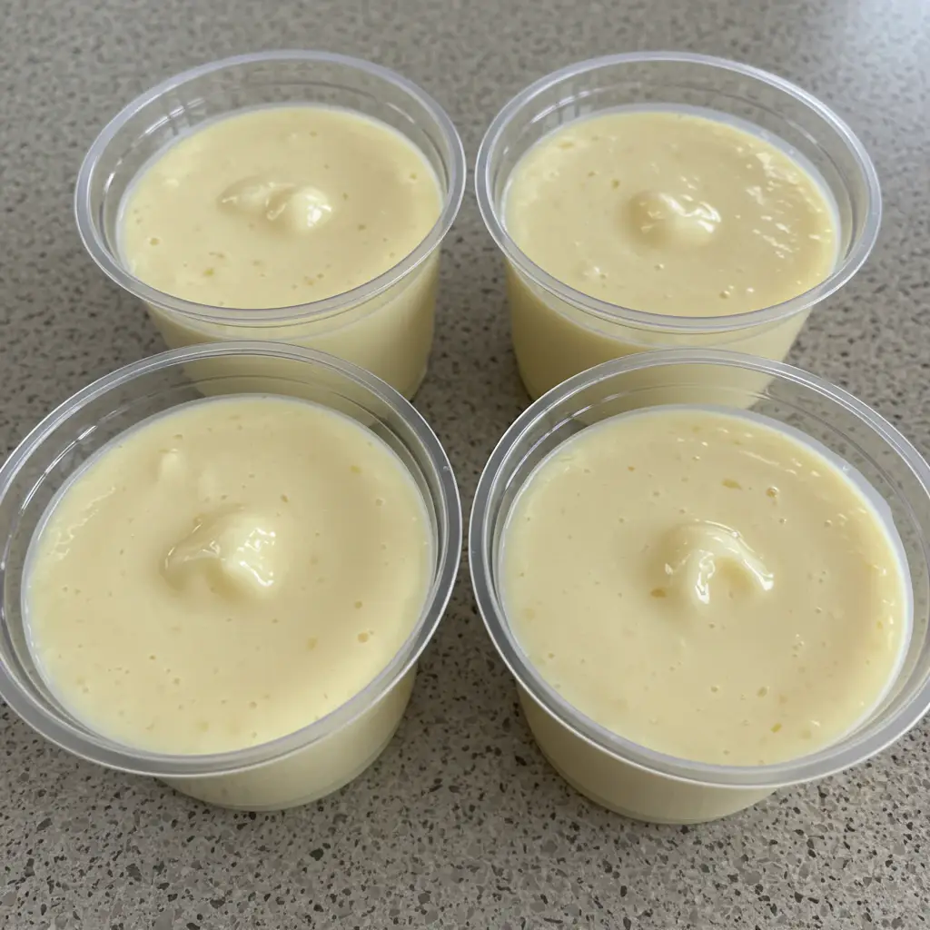 Distribua a mistura em copinhos de 100 ml, preenchendo até 80 ml, o que resulta em 20 unidades. Leve à geladeira por pelo menos 2 horas para firmar.