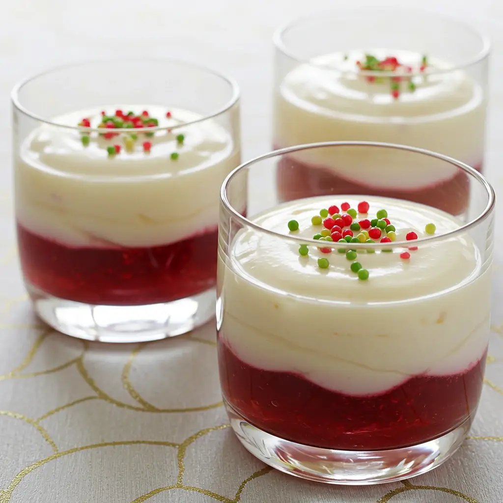 Após a gelatina de cereja estar firme, despeje o mousse de champanhe sobre ela.