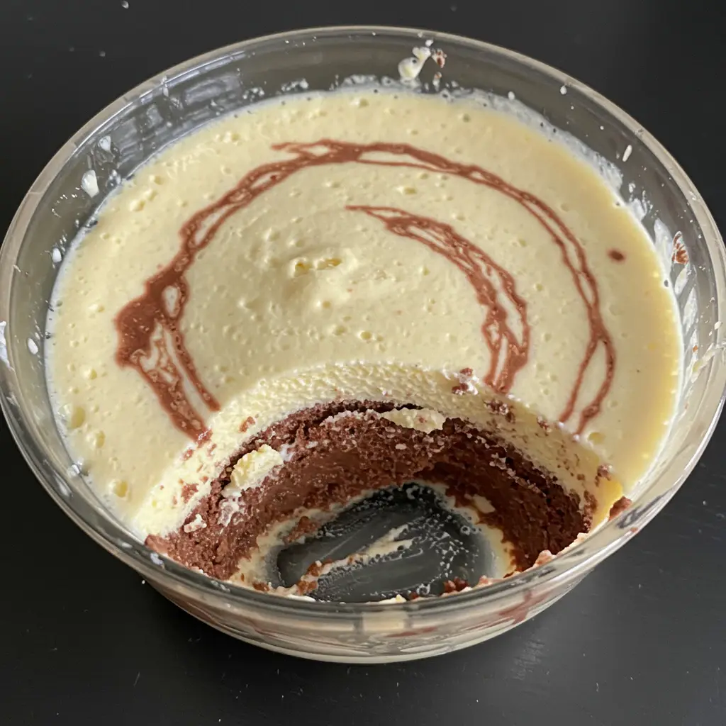 Despeje o achocolatado líquido sobre a mistura de creme, misturando levemente.