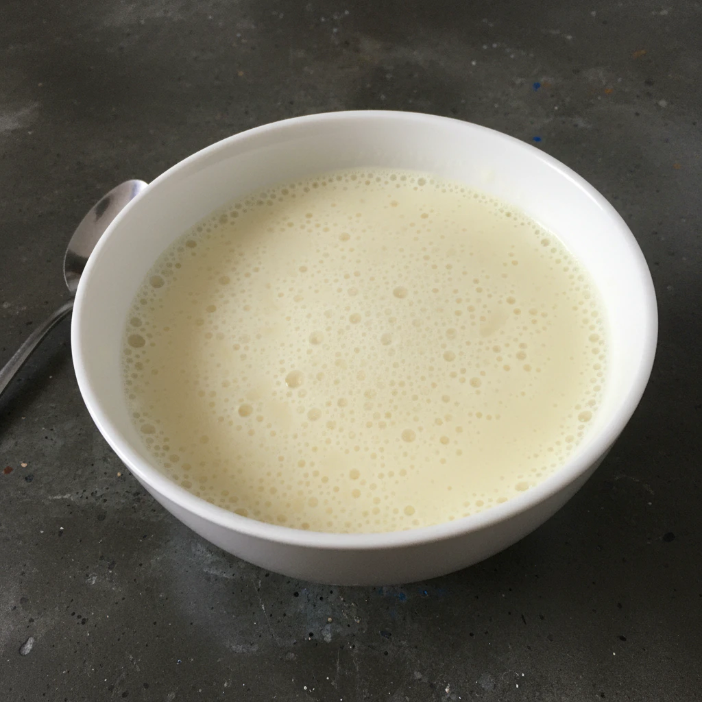 Prepare a gelatina sem sabor conforme as instruções da embalagem e adicione à mistura. Bata por mais 30 segundos apenas para misturar.