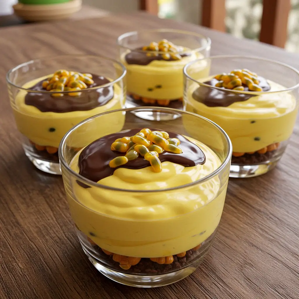 Uma deliciosa mousse de maracujá, leve e refrescante, coberta com um irresistível chocolate que combina perfeitamente. Uma sobremesa que vai conquistar todos os paladares!
