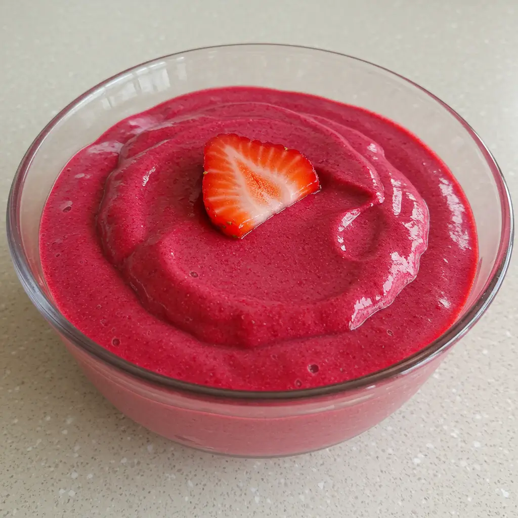 Antes de servir, decore com o morango reservado.