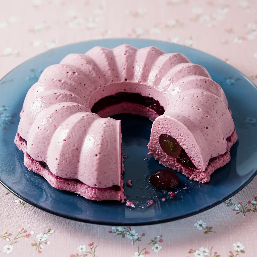 Desenforme o mousse em uma bandeja e sirva decorado com a calda de suco de uva reservada.