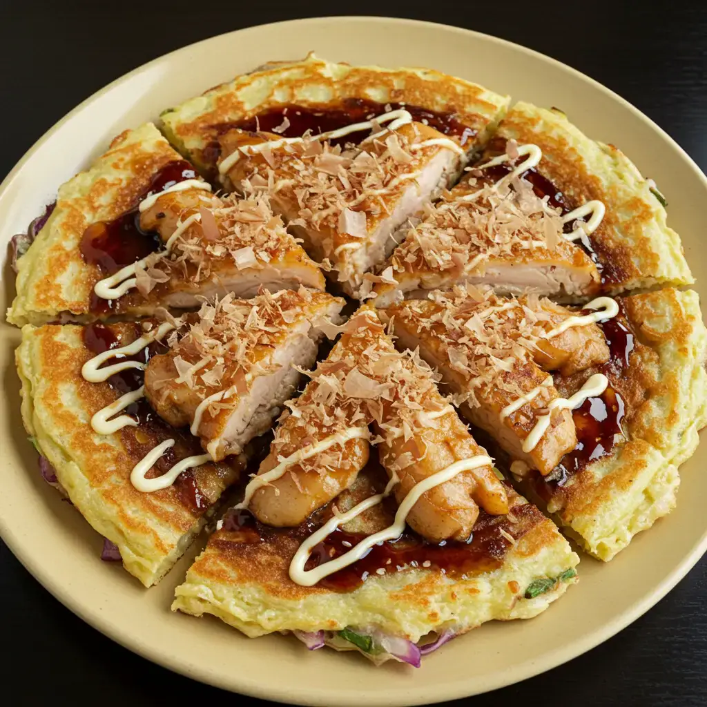 Uma deliciosa panqueca salgada, estilo okonomiyaki, com um toque brasileiro! Escolha seu recheio favorito e monte essa explosão de sabores. Perfeita para um jantar rápido e saboroso.