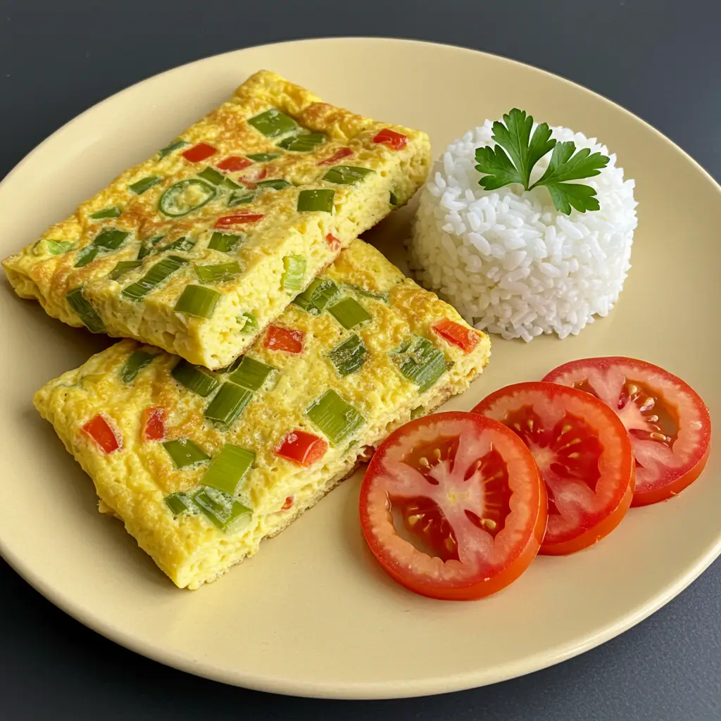 Uma omelete leve e saborosa, assada no forno com alho-poró, pimentão vermelho e cebola. Ideal para um café da manhã ou jantar rápido e nutritivo.