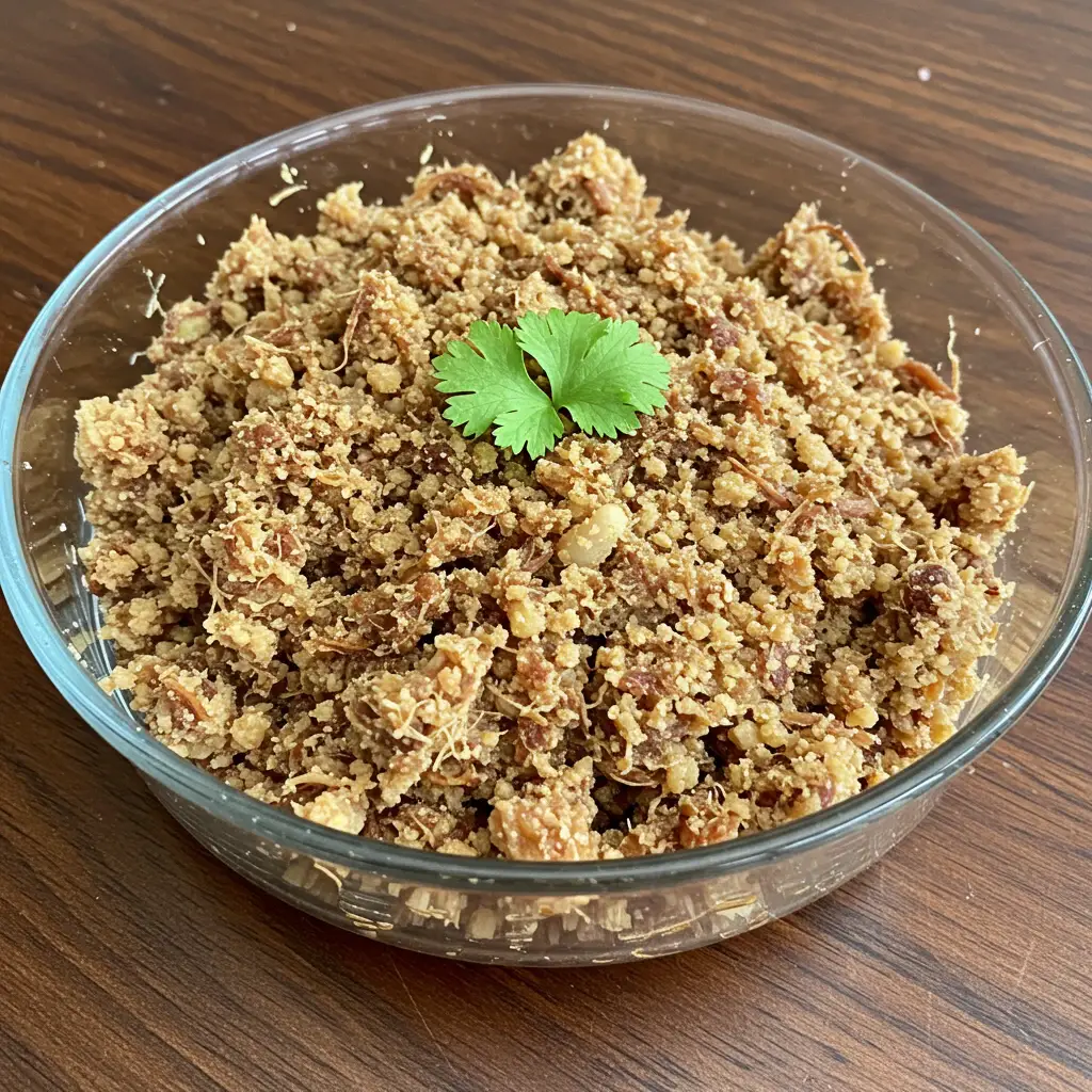 Uma deliciosa paçoca salgada com carne-de-sol e carne seca, perfeita para um almoço especial ou um petisco saboroso. A combinação da carne desfiada com a farinha de mandioca torrada cria uma textura única e irresistível.