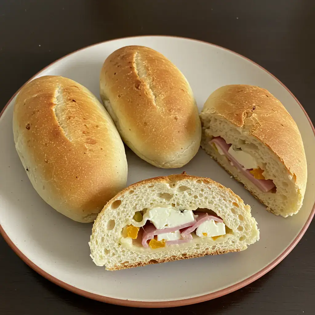 Pãezinhos fofinhos e saborosos, recheados com presunto, mussarela e um toque de tomate, azeitona e orégano. Uma receita simples e deliciosa para um lanche ou acompanhamento.