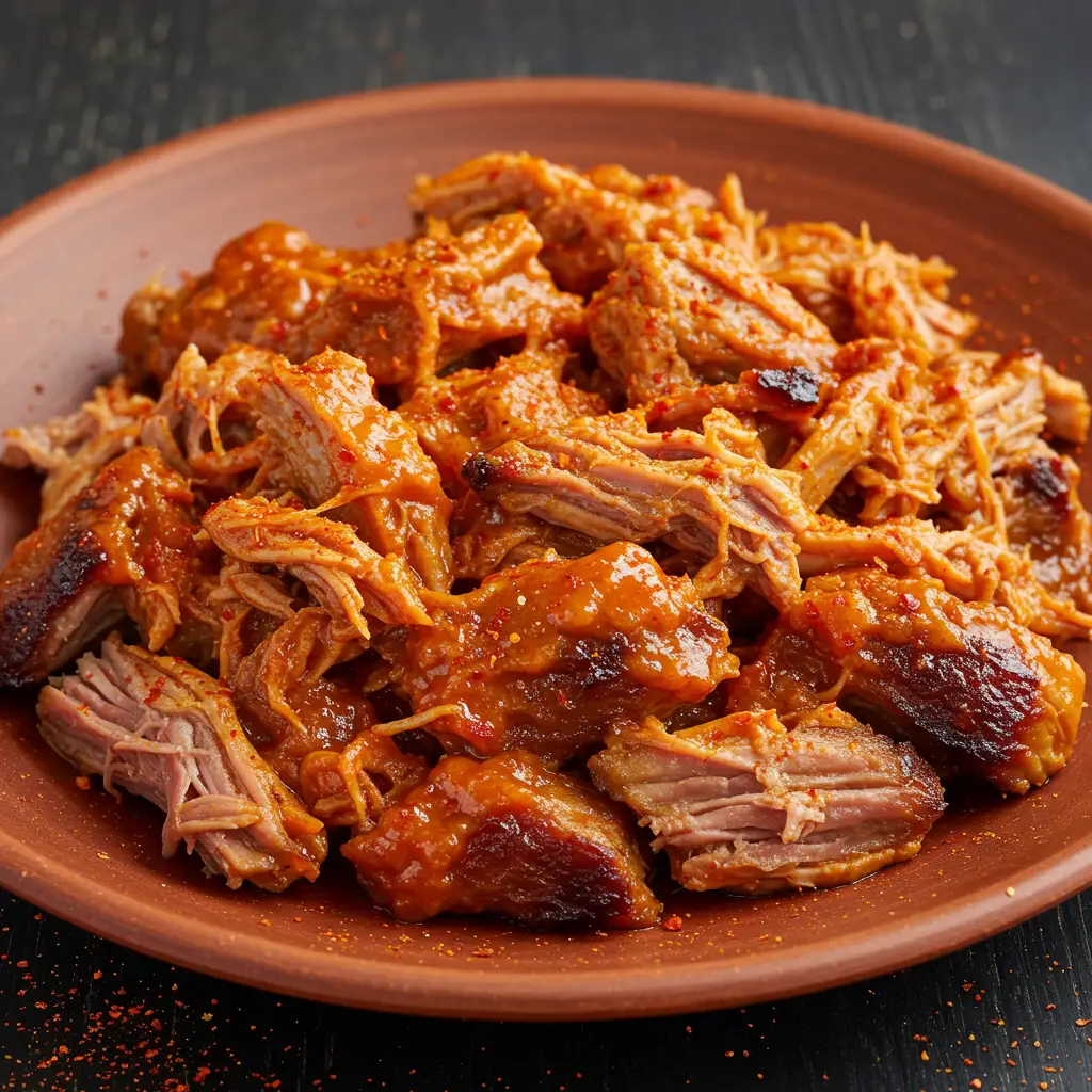 Uma paleta suína assada com sabor intenso de laranja e alecrim, resultando em uma carne macia e suculenta, perfeita para um almoço de domingo em família. Acompanhamentos como arroz branco e farofa completam a experiência.