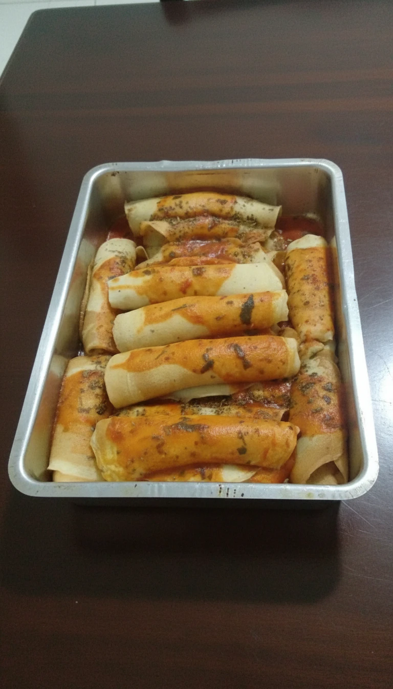 Deliciosas panquecas recheadas com um cremoso frango desfiado e milho, cobertas com molho de tomate e queijo. Uma refeição que agrada a toda a família!
