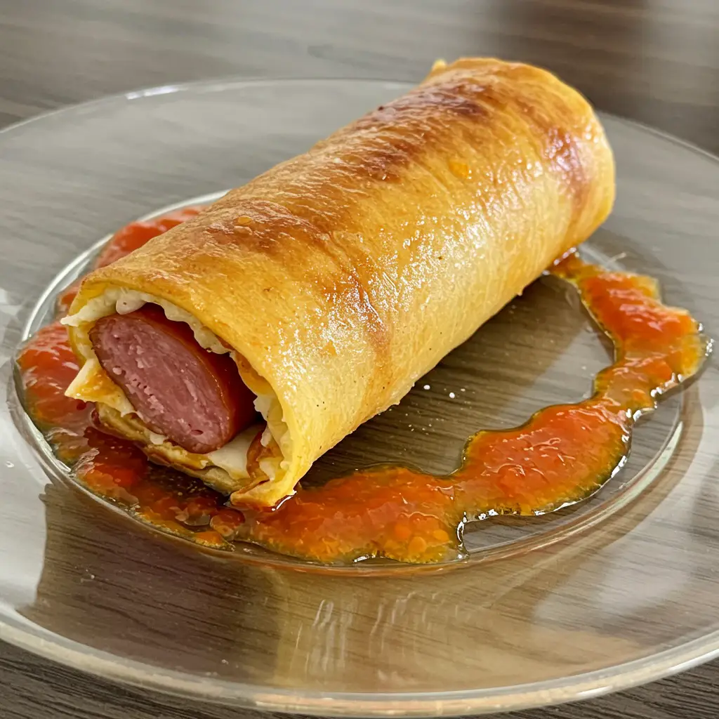 Deliciosas panquecas de soja recheadas com salsicha, cobertas com um molho saboroso de tomate. Uma opção prática e nutritiva para toda a família.