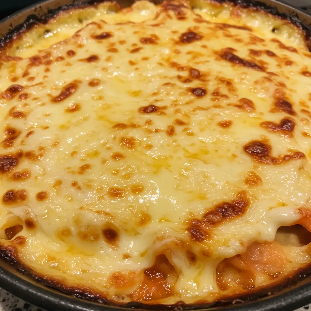 Deliciosas panquecas recheadas com presunto, queijo e calabresa, cobertas com um molho cremoso e gratinadas ao forno, perfeitas para uma refeição reconfortante.