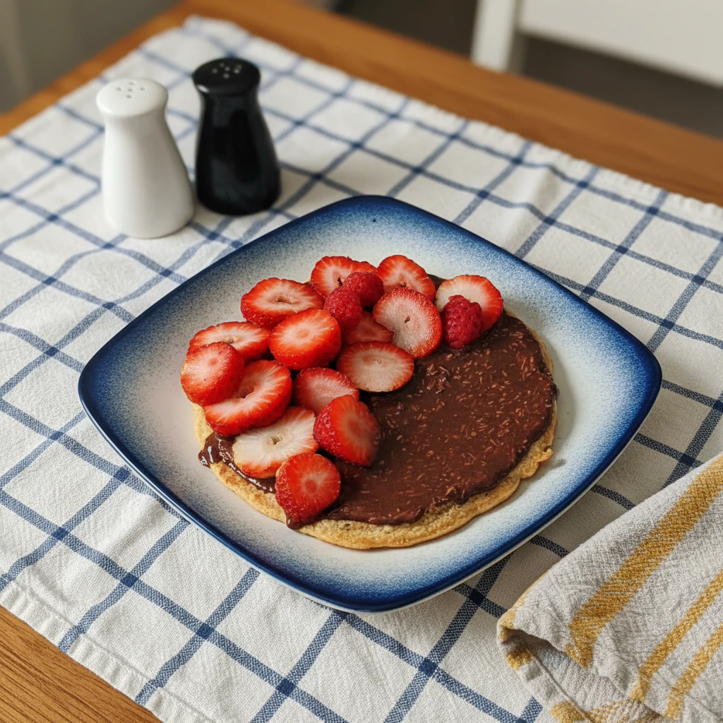 Deliciosas panquecas proteicas, leves e saborosas, perfeitas para um café da manhã ou lanche da tarde. A combinação de morango e chocolate whey proporciona um sabor irresistível. Uma receita fácil e rápida de preparar!