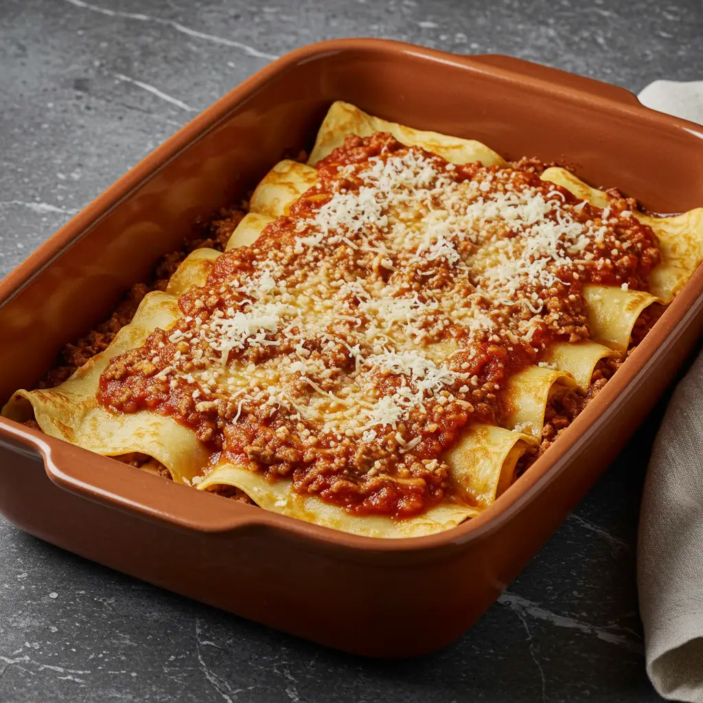 Disponha as panquecas em um refratário, cubra com o molho de sua preferência e polvilhe com queijo parmesão ralado.
