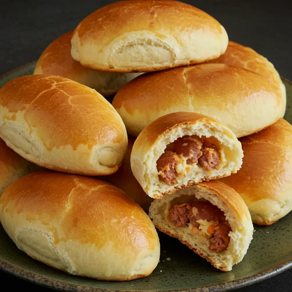 Delicioso pão caseiro recheado com um suculento e saboroso ragu de carne moída, queijo prato e tomate. Uma receita perfeita para um almoço em família ou um lanche especial!